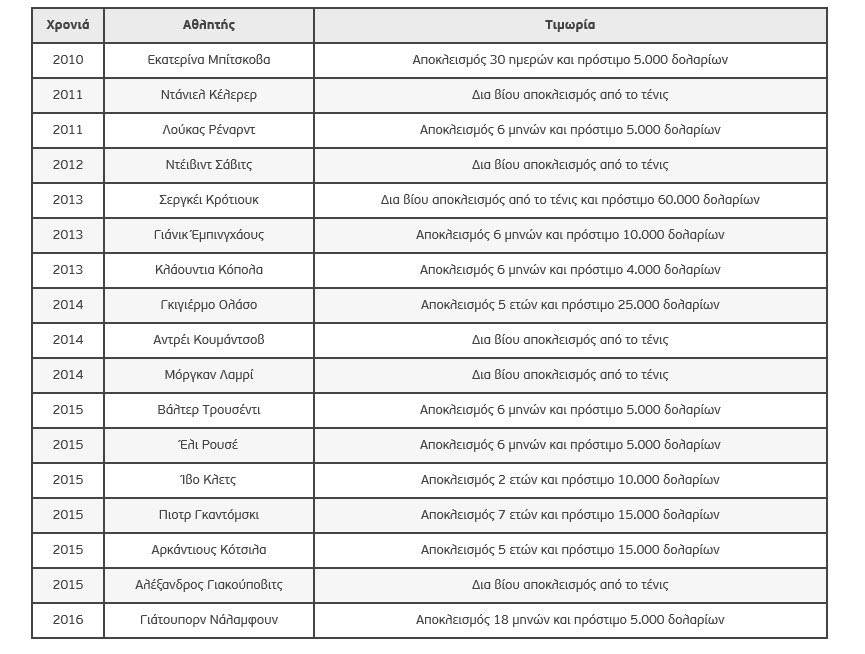 Αναλυτικά οι αθλητές που έχουν τιμωρηθεί: