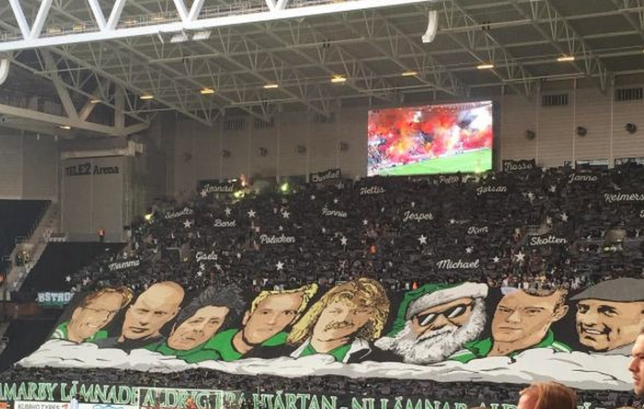 που ήταν σαν διαστημόπλοιο“), το οποίο μοιράζονταν με άλλο σύλλογο: την Djurgårdens IF ή αλλιώς εκ των κύριων ανταγωνιστών τους. Τι έγινε στο τελευταίο ντέρμπι που διεξήχθη με φιλάθλους και των δυο ομάδων -ναι συμβαίνουν και αυτά; Δεν ασχολήθηκαν οι μεν με τους δε, αλλά επικέντρωσαν όλοι στο παιχνίδι. Για να μην σας κουράζουμε -άλλο- ιδού. Τα πρόσωπα στο κορεό των hammarbyare είναι άνθρωποι της ομάδας (παίκτες και οπαδοί) που έγιναν θρύλοι.