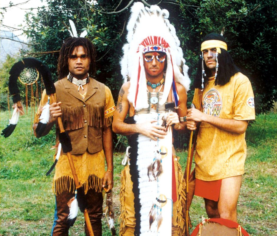 Κριστιάν Καρεμπέ, Ρομπέρτο Μαντσίνι και Χουάν Σεμπαστιάν Βερόν, συμπαίκτες στη Σαμπντόρια, φωτογραφημένοι ως Ινδιάνοι το 1996