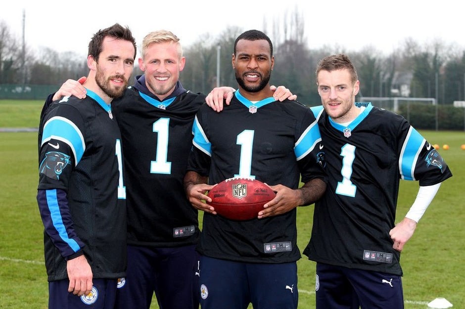 ➔ H ομάδα της Λέστερ ανέπτυξε φιλία με τους Carolina Panthers του NFL και αφού έστειλε μερικές εμφανίσεις της στην άλλη άκρη του Ατλαντικού, λίγο καιρό αργότερα έλαβε αντίστοιχο δώρο από την ομάδα αμερικανικού ποδοσφαίρου με έδρα τη Βόρεια Καρολίνα. Οι Τζέιμι Βάρντι, Κάσπερ Σμάιχελ, Γουές Μόργκαν και Κρίστιαν Φουχς φόρεσαν τις εμφανίσεις και δοκίμασαν τις δυνάμεις τους στο αμερικανικό ποδόσφαιρο, αποδεικνύοντας πως είναι άκρως σκληροτράχηλη ομάδα.