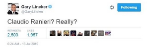 ➔ Ο Γκάρι Λίνεκερ αποφάσισε να “χοντρύνει” το παιχνίδι βλέποντας την εκπληκτικη πορεία της Λέστερ και υποσχέθηκε πως σε περίπτωση που η ομάδα του Ρανιέρι έπαιρνε τον τίτλο θα έβγαινε στην τηλεοπτική του εκπομπή (Match of the Day), την πρώτη της νέας σεζόν, φορώντας μόνο το εσώρουχό του . Αναμένουν όλοι την αποκαλύπτική εμφάνισή του…
