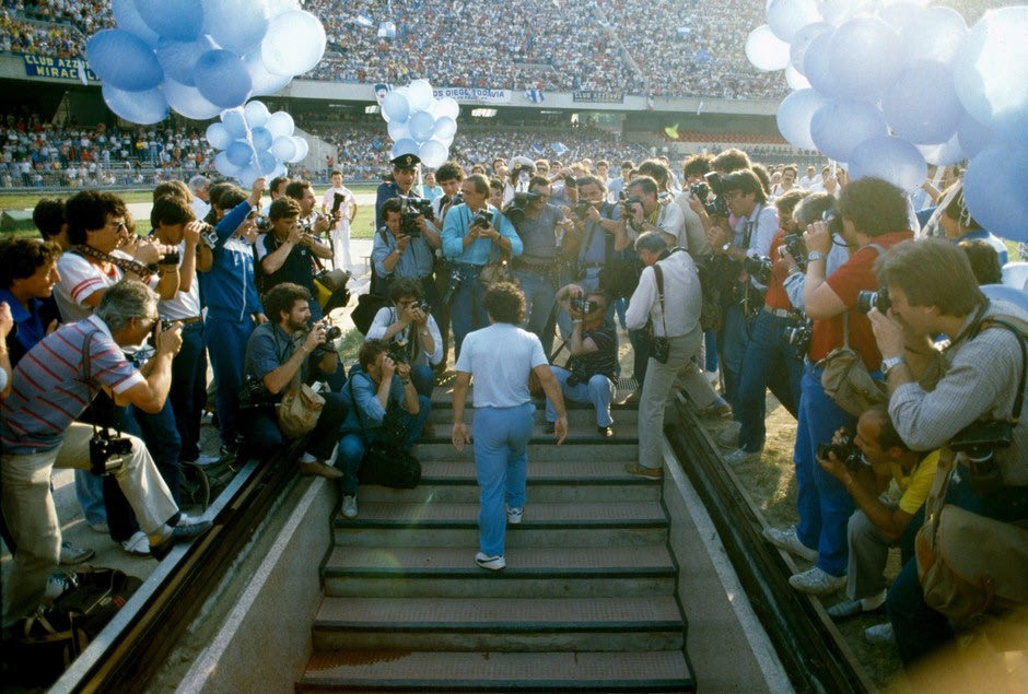 Το μεγάλο ποδοσφαιρικό κεφάλαιο του Μαραντόνα γράφεται στον Ιταλικό Νότο. Στο ίδιο μέρος θα γραφτεί και η καταστροφή του. Στη Νάπολι ο Ντιέγκο θα αρχίσει να αποκτά την θεϊκή του υπόσταση καθώς οι 75.000 Ναπολιτάνοι που τον υποδέχθηκαν ήταν μία σταγόνα στον ωκεανό λατρείας που θα ακολουθούσε. Ο “Πελούσα” θα αλλάξει εξ ολοκλήρου στην Ιταλία και δεν θα μπορέσει να διαχειριστεί την κατάσταση που είχε δημιουργηθεί γύρω του. Ίσως αν κάποιος μπορούσε τότε να αντιληφθεί τι γινόταν, η ιστορία να ήταν διαφορετική, καθώς ο φτωχός Νότος βρήκε σχεδόν 10.000.000 δολάρια (έσπασε το προηγούμενο δικό του ρεκόρ) για να φέρει τον Μαραντόνα στη Νάπολι. Χρήματα που μόνο η μαφία θα μπορούσε να σπαταλήσει και όπως είναι γνωστό η Καμόρα δεν είναι φιλανθρωπικό ίδρυμα. Δεν θα έκανε τίποτα για το καλό της πόλης ή του Ντιέγκο αν δεν μπορούσε να εξασφαλίσει τα δικά της συμφέροντα τα οποία εξετέλεσε ο Αργεντινός σούπερ σταρ με την κοκαΐνη και τις πόρνες να παίρνουν αποφάσεις αντί γι αυτόν. Ο Μαραντόνα έγινε ο βασιλιάς της πόλης. Βίλες με πισίνες για αυτόν και τα σχεδόν 40 άτομα συνοδεία που είχε, γυναίκες, κλαμπ για την προσωπική του διασκέδαση ανοιχτά μόνο για αυτόν και όσα ναρκωτικά μπορούσε να καταναλώσει ήταν στην διάθεσή του!