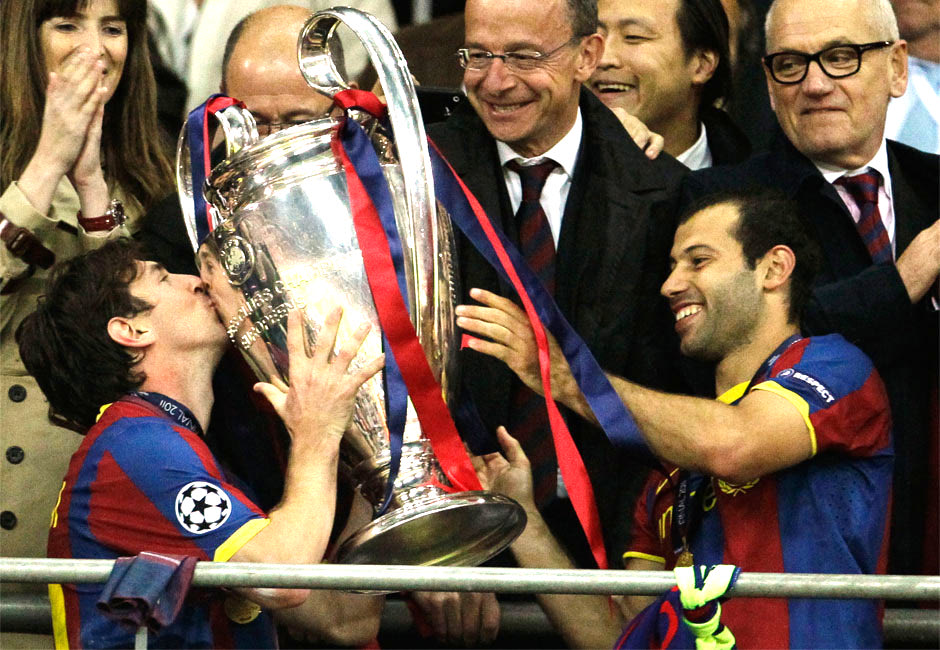 Ο Μαστσεράνο κατέκτησε 17 τίτλους με την Μπαρτσελόνα, μεταξύ των οποίων και δυο Champions League. Εδώ με τον συμπατριώτη του, Μέσι και το τρόπαιο του 2011 (AP Photo/Matt Dunham)