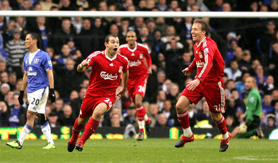 Ο Μαστσεράνο πανηγυρίζει το τέρμα του εναντίον της Έβερτον στο τοπικό ντέρμπι της πόλης του Λίβερπουλ (2009)