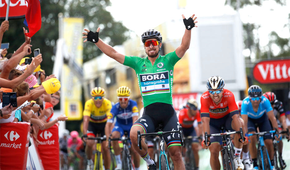 Ο Πέτερ Σάγκαν (Bora Hansgrohe) ήταν ο πολυνίκης της διοργάνωσης. Ο Σλοβάκος κέρδισε τα 3 από τα 9 μαζικά σπριντ και έφτασε τις 11 συνολικά νίκες στο Tour de France (AP Photo/Christophe Ena)