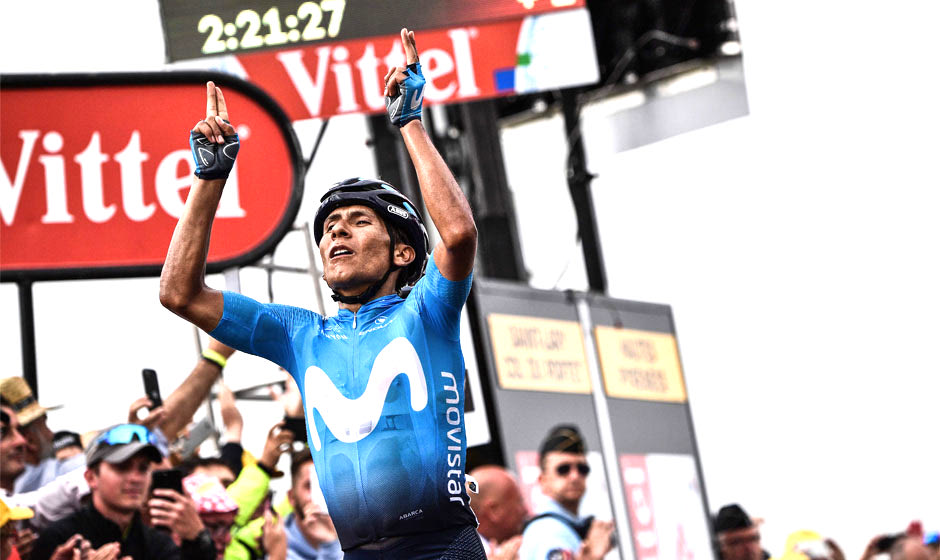 Ο Νάιρο Κιντάνα (Movistar) νικητής στην κορυφή του Κολ ντι Πορτέ στο 17ο ετάπ των 65 χιλιομέτρων.