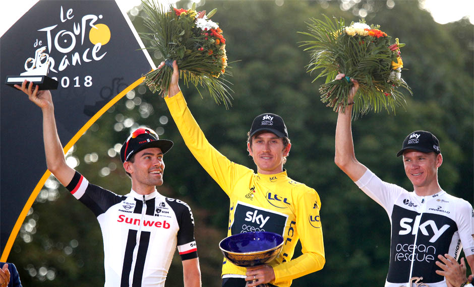 Επίσης, κάτι πολύ σημαντικό, ο “G” είχε μαζί του τη λεγόμενη τύχη των πρωταθλητών. Υπήρξε ο μοναδικός από όλα τα φαβορί που δεν έχασε ούτε ένα δευτερόλεπτο από κάποιο απρόοπτο. Δεν είχε πτώσεις, δεν είχε μηχανικά προβλήματα, δεν τον απασχόλησε οτιδήποτε εκτός των αμιγώς αγωνιστικών. Εκμεταλλεύτηκε στο έπακρο αυτή του την τύχη, μπαίνοντας ενισχυμένος στη δεύτερη εβδομάδα, κέρδισε δυο διαδοχικά ετάπ στις Άλπεις, στην Ροζιέρ και στο Αλπ ντ’Ουέζ (ο τρίτος που το πετυχαίνει στην ιστορία του Tour, μετά τους Κόπι και Ζούτεμελκ) και μπήκε στην τρίτη εβδομάδα “καβάλα στ’ άλογο”, έτοιμος να διαψεύσει όσους στοιχημάτιζαν σε μια πιθανή κατάρρευσή του στα Πυρηναία. Εκεί αποδείχθηκε άξιος υπερασπιστής της κίτρινης φανέλας, μεγαλώνοντας ακόμα περισσότερο τη διαφορά του από τους υπόλοιπους διεκδικητές και τελικά δικαιώθηκε απόλυτα, ανεβαίνοντας στο πιο ψηλό σκαλί του βάθρου στα Ηλύσια Πεδία. Στα 32 του χρόνια και στην πλήρη ωριμότητα της καριέρας του, ο Ουαλός παρέδωσε μαθήματα λογικής, εμπειρίας, συγκέντρωσης και ικανοτήτων, κερδίζοντας την καθολική αναγνώριση. Θα έχει πάντως μεγάλο ενδιαφέρον να δούμε τί θα γίνει του χρόνου. Θεωρώντας ότι θα συνεχίσει στη Sky, ο “G” έχει πλέον υπέρ του όχι μόνο τα φετινά αποτελέσματα (Ντοφινέ & Γύρο Γαλλίας), αλλά και την θαυμαστή συνέπεια λόγων και έργων, που του προσδίδει ακόμα μεγαλύτερη αξιοπιστία ως (συν)αρχηγού της βρετανικής ομάδας.
