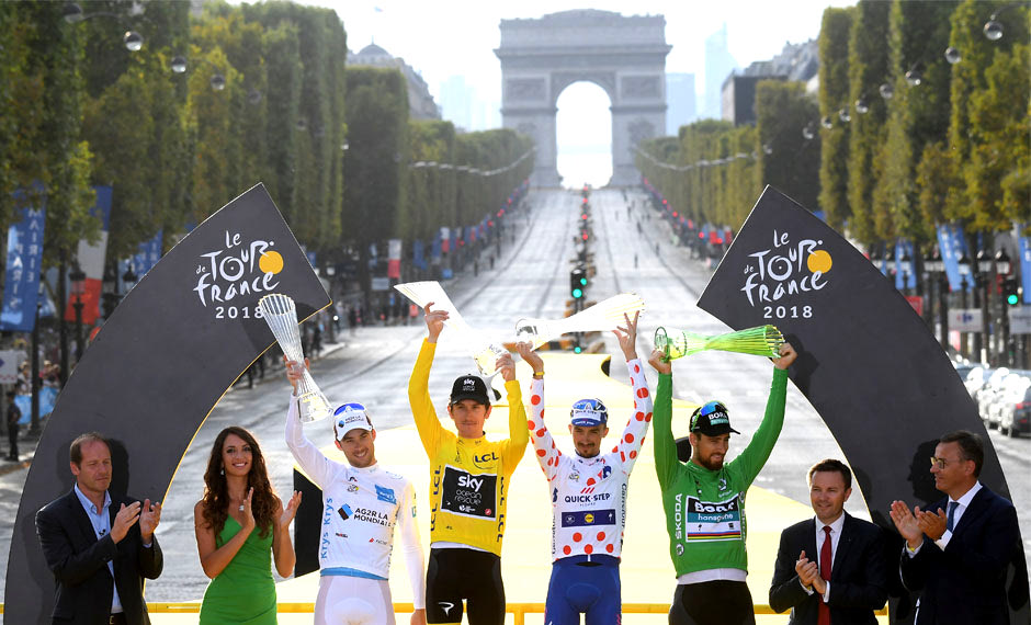 Ο 105ος Γύρος της Γαλλίας ολοκληρώθηκε χθες στο Παρίσι με μεγάλο νικητή τον Γκέρεντ Τόμας της Sky. Στο τελικό βάθρο τον πλαισίωσαν οι Τομ Ντιμουλάν της Sunweb και Κρις Φρουμ της Sky. Ο Πέτερ Σάγκαν (Bora Hansgrohe) πήρε την πράσινη φανέλα των πόντων για έκτη φορά (ισοφαρίζοντας το ρεκόρ του Έρικ Τσάμπελ), ενώ ο Ζουλιάν Αλαφιλίπ (Quick Step Floors) κέρδισε την πουά φανέλα των βουνών. Ο Πιέρ Λατούρ (Ag2r) ήρθε πρώτος στην κατάταξη του καλύτερου νέου αθλητή (λευκή φανέλα) και ο Νταν Μάρτιν (UAE) ψηφίστηκε ως ο πιο μαχητικός αθλητής. Πολυνίκης της διοργάνωσης ήταν ο Πέτερ Σάγκαν (Bora Hansgrohe) με 3 κερδισμένα ετάπ, πολυνίκης ομάδα αναδείχθηκε η Quick Step Floors με 4 κερδισμένα ετάπ και η Movistar κέρδισε την ομαδική κατάταξη. Μετά από 23 μέρες αγώνα, 21 ετάπ και 3.351 χιλιόμετρα, ένας ακόμα Γύρος Γαλλίας έφτασε στο τέλος του και το Sport24.gr σας παρουσιάζει την ανασκόπηση του αγώνα. Η διοργάνωση, οι εντυπώσεις, η εξέλιξη, οι πρωταγωνιστές, οι νικητές.
