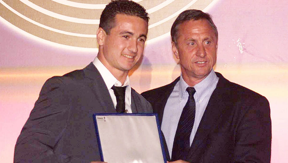 Ξαφνικά, ανοίγει η πόρτα, κατεβαίνει ο Κρόιφ, με πλησιάζει, με αγκαλιάζει και μου λέει: ‘Συνέχισε έτσι, μου αρέσεις πάρα πολύ’. Δεν ξέρω, μου έκανε τεράστιο εντύπωση το συγκεκριμένο σκηνικό γιατί προσωπικά αισθανόμουν ασήμαντος μπροστά του. Ήταν πολύ απλός άνθρωπος. Τον αγαπούσαν πάρα πολύ οι Ολλανδοί και δεν πρόκειται να τον ξεχάσουν ποτέ. Θυμάμαι, είχαμε συζητήσει 2-3 φορές, ενώ τον είχε φέρει κι ο ΠΣΑΠ στην Ελλάδα για να τον βραβεύσει για την προσφορά του. Για εμένα, είναι ο άνθρωπος που άλλαξε τη ροή του παγκοσμίου ποδοσφαίρου.