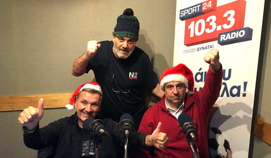 Η εορταστική εκπομπή της παραμονής των Χριστουγέννων στον Sport24Radio 103.3, που ξεπέρασε τις εννιά ώρες σε διάρκεια! Ακούστε τους παραγωγούς 18 εκπομπών του ραδιοφώνου μας, να ανοίγουν την καρδιά τους στους ακροατές, παίζοντας πιο δυνατά από ποτέ!