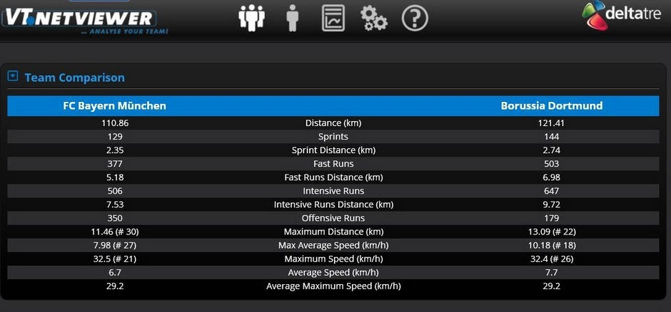 Εδώ μπορείτε να δείτε ένα υπόδειγμα ανάλυσης αγώνα με το σύστημα VIS Track. Υπόδειγμα από ανάλυση, μέσω VIS Track, αγώνα Μπάγερν-Ντόρτμουντ, όπως δημοσιεύεται στην ιστοσελίδα της Impire AG.