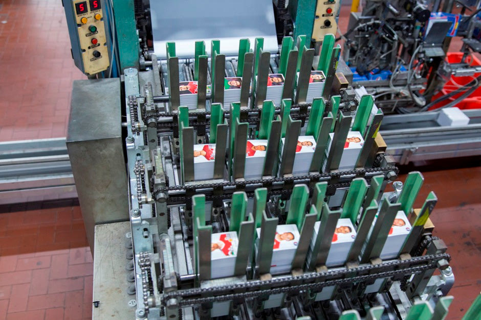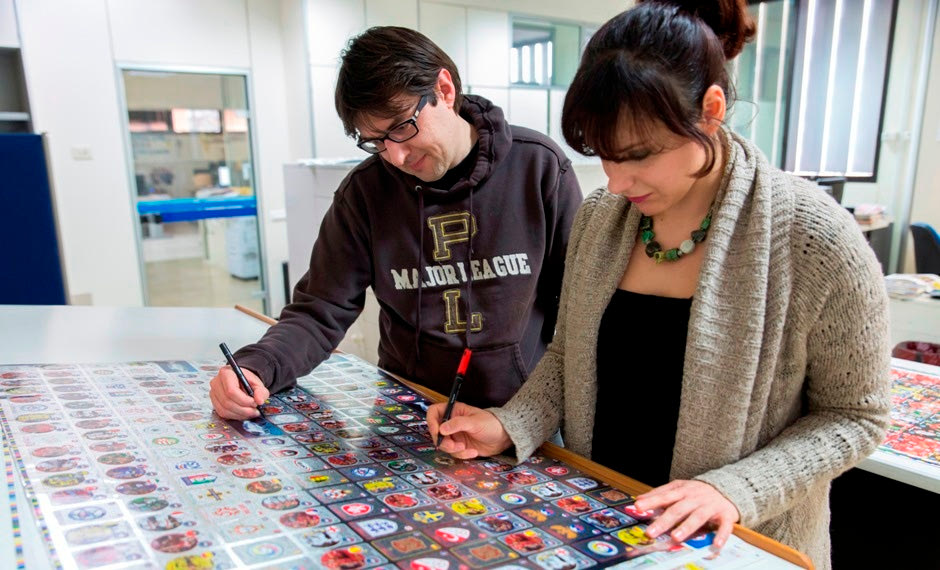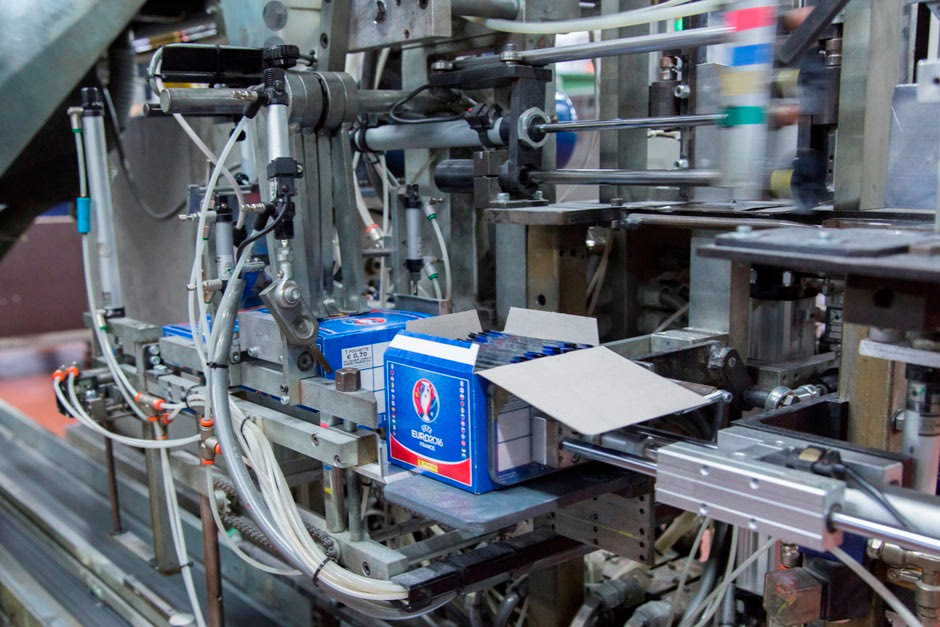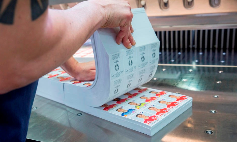 Στη συνέχεια, αυτή η στοίβα πηγαίνει για κόψιμο, πριν γίνει η μίξη, μπει κάθε αυτοκόλλητο στο φακελάκι και στη συνέχεια κάθε φακελάκι μπει στο κουτί του. Αν σε ένα φακελάκι μπουν τέσσερα αντί για πέντε αυτοκόλλητα, τότε το μηχάνημα το απορρίπτει έχοντας ελέγξει το βάρος του. Το ίδιο θα συμβεί και με το κουτί. Αν υπάρχει ένα φακελάκι λιγότερο, το κουτί θα πέσει σε έναν κάδο για να ελεγχθεί ξεχωριστά και χειροκίνητα από τους εργάτες. ” Δεν θα βρείτε δυο ίδια αυτοκόλλητα σε ένα φακελάκι και δεν υπάρχουν σπάνια κομμάτια. Και ξέρεις γιατί; Διότι μας ενδιαφέρει ο κόσμος να μπορεί να συμπληρώνει το album. Θέλουμε στο τέλος της διαδικασίας να είναι όλοι χαρούμενοι” μου εξήγησαν χαρακτηριστικά.