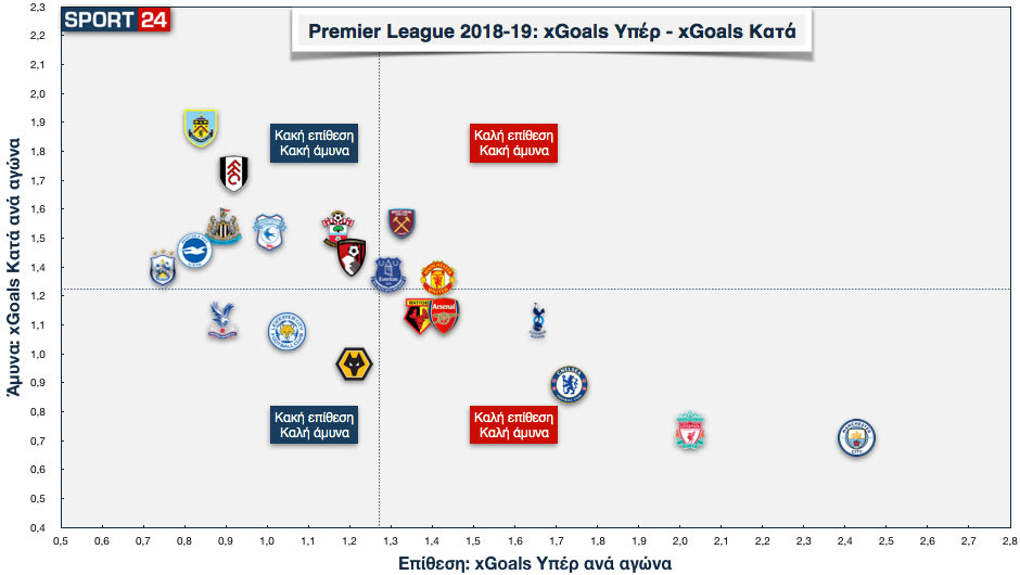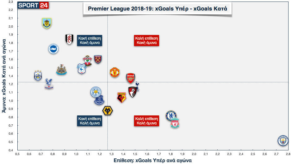 “Μάντσεστερ Σίτι, ηρέμησε λίγο”. Αυτός ήταν ο τίτλος του κειμένου μετά τις 12 πρώτες αγωνιστικές. Η βαθμολογία έλεγε πως η Λίβερπουλ ήταν κοντά, αλλά η ομάδα του Πεπ ήταν μακριά σε όλους τους δείκτες. Αυτή ήταν η εικόνα, με τη Σίτι να έχει πάνω από 2.7 xGoals υπέρ και λίγο πάνω από 0.50 κατά. Εξωγήινη εικόνα.