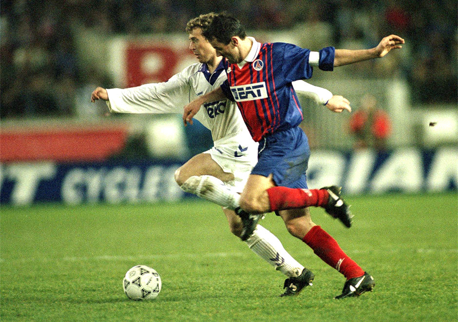 Μπουτραγκένιο και Λε Γκεν (15/3/1994) διεκδικούν τη μπάλα στο “Παρκ ντε Πρενς” (AP Photo/Lionel Cironneau)