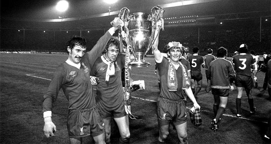 Τέρι Μακ Ντέρμοτ, Φιλ Νιλ και Κένι Νταλγκλίς ποζάρουν με το τρόπαιο του 1978, το οποίο κατέκτησαν νικώντας 1-0 την Μπριζ (με σκόρερ τον Νταλγκλίς) στον τελικό του “Γουέμπλεϊ” (AP Photo)