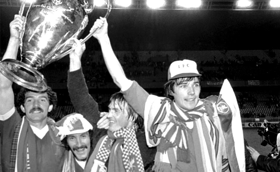 Από αριστερά: Γκρέιαμ Σούνες, Τέρι Μακ Ντέρμοτ, Κένι Νταλγκλίς και Άλαν Χάνσεν, με το Κύπελλο Πρωταθλητριών, αμέσως μετά τη λήξη του τελικού του 1981 στο “Παρκ ντε Πρενς” (AP Photo/StaffLipchitz)