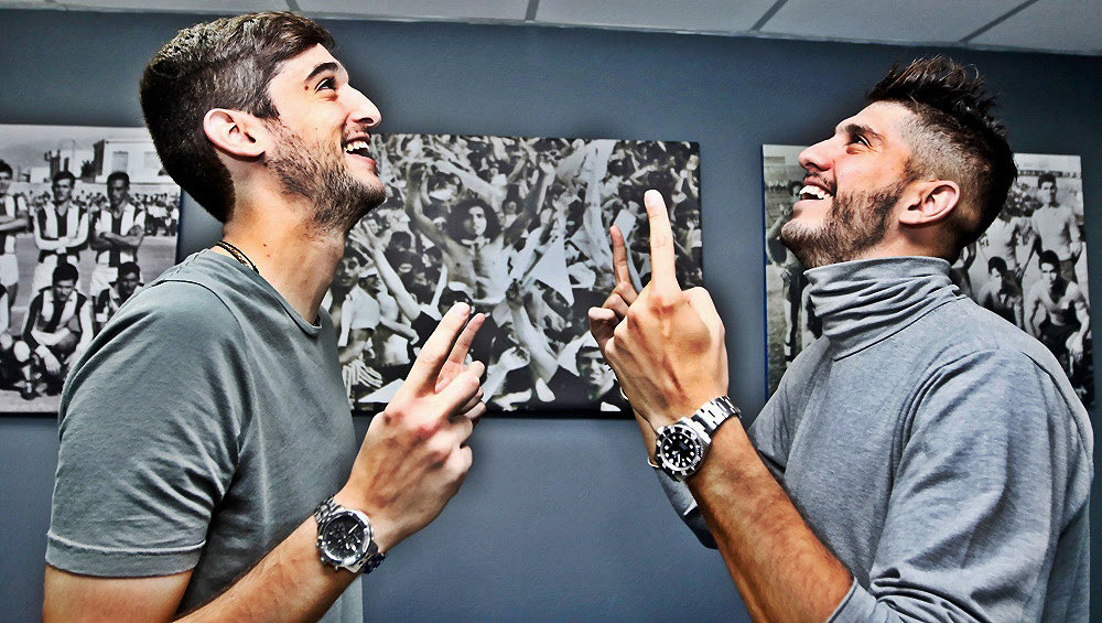 Σπύρος: “Το ξέρουμε ότι δεν είναι εύκολο. Αλλά είμαστε πραγματικά πολύ αγαπημένοι. Και όχι μόνο μεταξύ μας. Υπάρχει δέσιμο και με τον Γιαννιώτη, αλλά και με τον Σιώπη με τον οποίο ήμασταν συμπαίκτες στον Πανιώνιο”.
