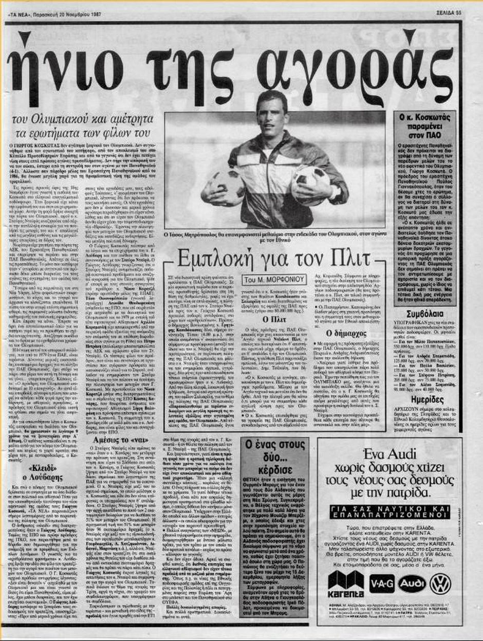 Ο Γιώργος Κοσκωτάς στον χαμένο τελικό Κυπέλλου το 1988 στο ΟΑΚΑ με τον Παναθηναϊκό