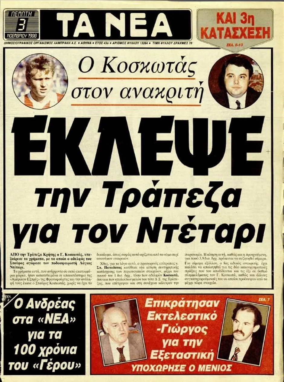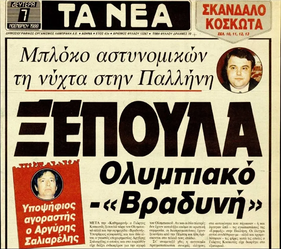 Η Μεταπολιτευτική Ελλάδα από το 1974 ως και σήμερα, βρίθει σκανδάλων. Πολιτικά, οικονομικά, επιχειρηματικά, αθλητικά, όποιο πεδίο της ζωής μας και αν αφορά, αποτελούν μια μεγάλη πληγή και εν πολλοίς συνέβαλαν στο να έχουμε φτάσει ως χώρα στη σημερινή δεινή κατάσταση και να βιώνουμε τις χειρότερες ημέρες της σύγχρονης ιστορίας μας. Το Sport24.gr γυρίζει την κλεψύδρα ανάποδα και επαναφέρει μνήμες του πρώτου μεγάλου σκανδάλου διαφθοράς στην Ελλάδα της “Αλλαγής”, που δεν είναι άλλο από εκείνο με πρωταγωνιστή τον μεγιστάνα του πλούτου μιας αμαρτωλής περιόδου, τον Γιώργο Κοσκωτά.