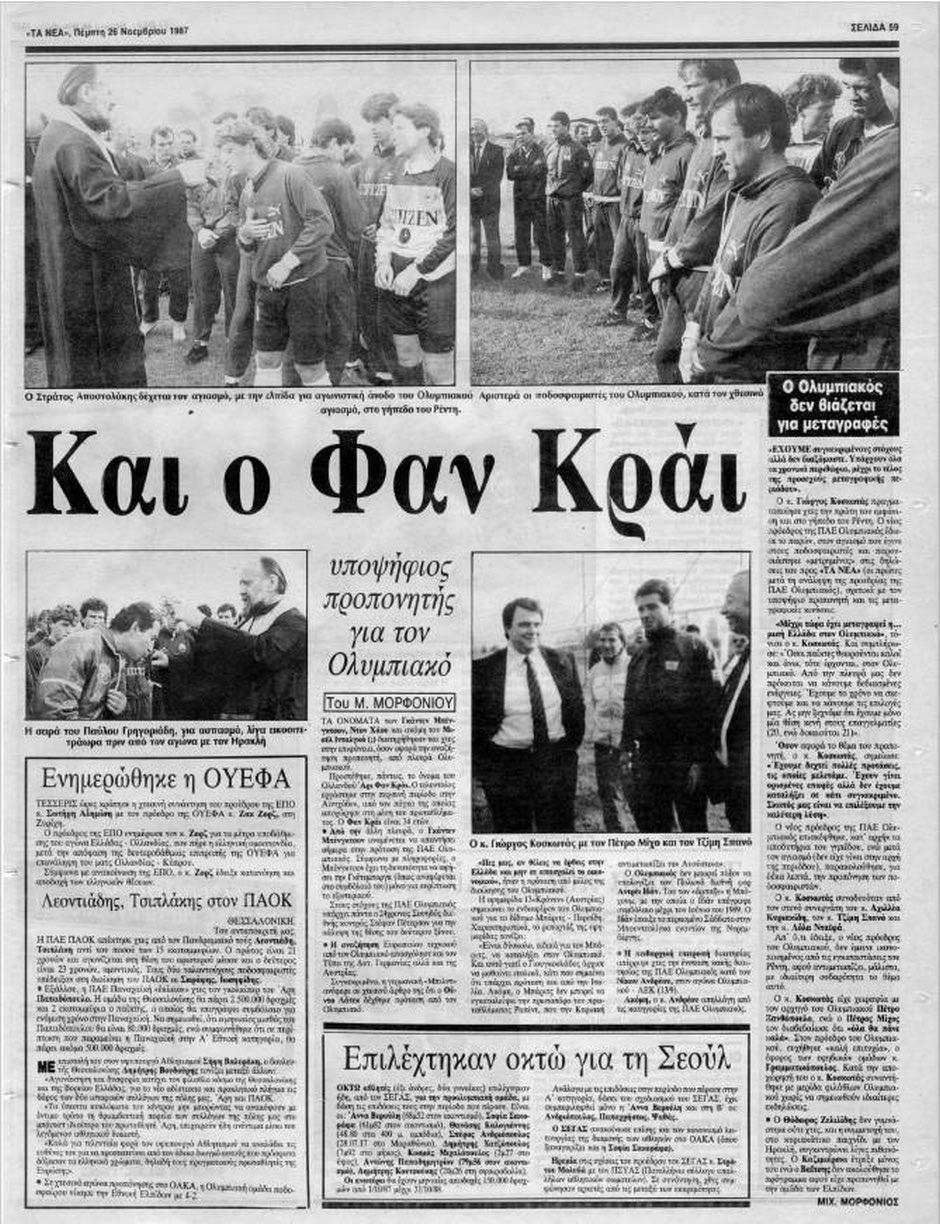 Το καλοκαίρι του 1988, ο Κοσκωτάς ήθελε να κάνει πάταγο και να φέρει στον Ολυμπιακό ονόματα παγκόσμιας κλάσης, που ούτε καν μπορούσαν να φανταστούν εκείνα τα χρόνια. Οι Γιούργκεν Κλίνσμαν, Πάολο Φούτρε και Λάγιος Ντέταρι αποτελούσαν τα μεγάλα στοιχήματα για τον μεγιστάνα ιδιοκτήτη των Πειραιωτών. Ο Πορτογάλος είχε κάνει όργια στην Πόρτο από το 1984 ως το 1987, προτού τον αγοράσει η Ατλέτικο Μαδρίτης το καλοκαίρι του 1987. Ο Κοσκωτάς έδινε 3.000.000.000 δραχμές στους “ροχιμπλάνκος” και 1.500.000.000 δραχμές ετησίως στον παίκτη. Εντέλει, ένας τραυματισμός του, διέκοψε τις συζητήσεις και το deal δεν προχώρησε ποτέ. Ο 34χρονος μεγαλομέτοχος του Ολυμπιακού, στο άψε-σβήσε και με ένα ποσό της τάξεως του 1.100.000.000 δραχμών, έφερε τον 25χρονο διεθνή Ούγγρο, Λάγιος Ντέταρι, Κυπελλούχο Γερμανίας με την Άιντραχτ Φρανκφούρτης και με συμμετοχή στο Μουντιάλ του 1986 στο Μεξικό. Η υποδοχή που επιφυλάχθηκε στον Μαγυάρο στην Πλατεία Κοραή από δεκάδες χιλιάδες φιλάθλους, δεν είχε προηγούμενο. Εκτός του Ντέταρι, ο Κοσκωτάς έφερε και τους Παναγιώτη Μολακίδη (Πανσερραϊκό), Αλέκο Ράντο (Πιερικό), Αγάπιο Καλταβερίδη (Βασιλεία / Ελβετία), Κυριάκο Καραταΐδη (Καστοριά), Ηλία Σαββίδη (Πανσερραϊκό), Σωτήρη Μαυρομμάτη (ΠΑΟΚ) και Σάββα Κωφίδη (Ηρακλή). Προπονητής ήταν ο Γιάτσεκ Γκμοχ, ο οποίος προερχόταν από το πρωτάθλημα με τη Λάρισα και πλέον ήθελε να επαναφέρει και τους “ερυθρόλευκους” στην κορυφή. Δεν τα βρήκε όμως τόσο εύκολα τα πράγματα, όσο θα περίμενε…
