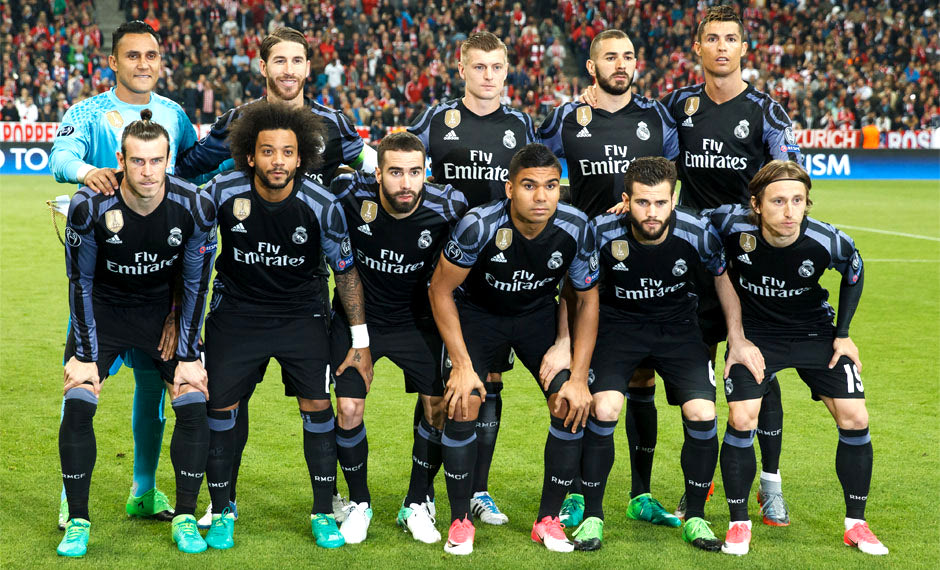 Η ενδεκάδα της Ρεάλ στην περσινή αναμέτρηση με την Μπάγερν στην “Allianz Arena” για τα προημιτελικά του Champions League (12/4/2017). Πίσω, από αριστερά: Νάβας, Σέρχιο Ράμος, Κρόος, Μπενζεμά, Κριστιάνο. Μπροστά, από αριστερά: Μπέιλ, Μαρσέλο, Καρβαχάλ, Κασεμίρο, Νάτσο, Μόντριτς. Με εξαίρεση τους Μπέιλ και Νάτσο, όλοι οι υπόλοιποι θα βρεθούν λογικά και στο αρχικό σχήμα των “μπλάνκος” το βράδυ της Τετάρτης.