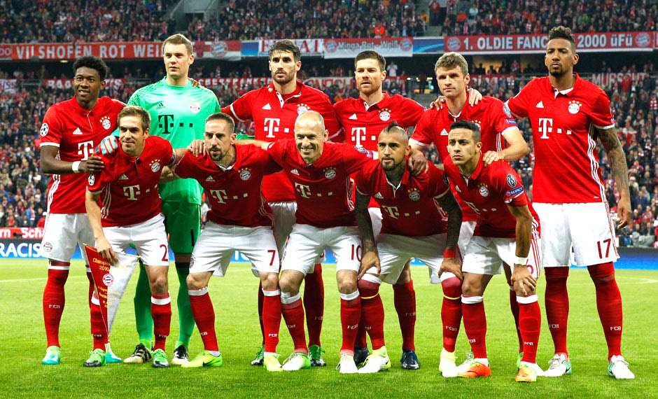 Η ενδεκάδα της Μπάγερν στην περσινή αναμέτρηση με τη Ρεάλ στην “Allianz Arena” για τα προημιτελικά του Champions League (12/4/2017). Πίσω, από αριστερά: Αλάμπα, Νόιερ, Χάβι Μαρτίνεθ, Τσάμπι Αλόνσο, Μίλερ, Μπόατενγκ. Μπροστά, από αριστερά: Λαμ, Ριμπερί, Ρόμπεν, Βιδάλ, Τιάγκο Αλκάνταρα. Εκτός των Λαμ και Τσάμπι Αλόνσο που σταμάτησαν το ποδόσφαιρο, όλοι οι υπόλοιποι συνεχίζουν στον βαυαρικό σύλλογο, αλλά Νόιερ και Βιδάλ είναι τραυματίες.