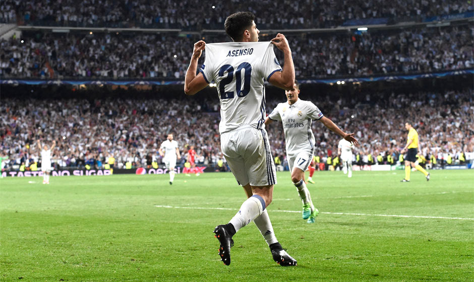 Ο Ασένσιο πανηγυρίζει το τελευταίο μέχρι σήμερα γκολ που έχει επιτευχθεί σε αναμέτρηση Ρεάλ – Μπάγερν, στον περσινό επαναληπτικό προημιτελικό του Champions League στο “Σαντιάγο Μπερναμπέου”. Οι “μερένγκες” νίκησαν 4-2 στην παράταση και πήραν την πρόκριση (18/4/2017)