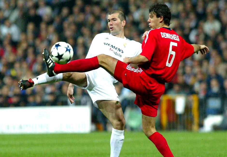 Ζιντάν και Ντεμιτσέλις διεκδικούν τη μπάλα στο “Μπερναμπέου” (ChL, φάση των “16”, 10/3/2004)