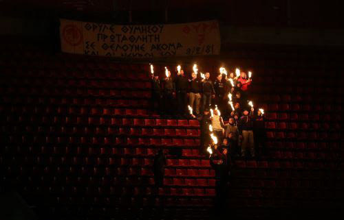 Φτάσαμε. Εδώ, στο Καραϊσκάκη. Το κρύο πιρουνιάζει. Βάζω τα χέρια στις τσέπες και προχωράω προς την είσοδο. Σηκώνω το κεφάλι και βλέπω τις σημαίες. Σήμερα δεν κυματίζουν όπως πάντα. Είναι στη μέση του ιστού. Συνεχίζω, ξέροντας από πριν πού θα κοντοσταθώ.