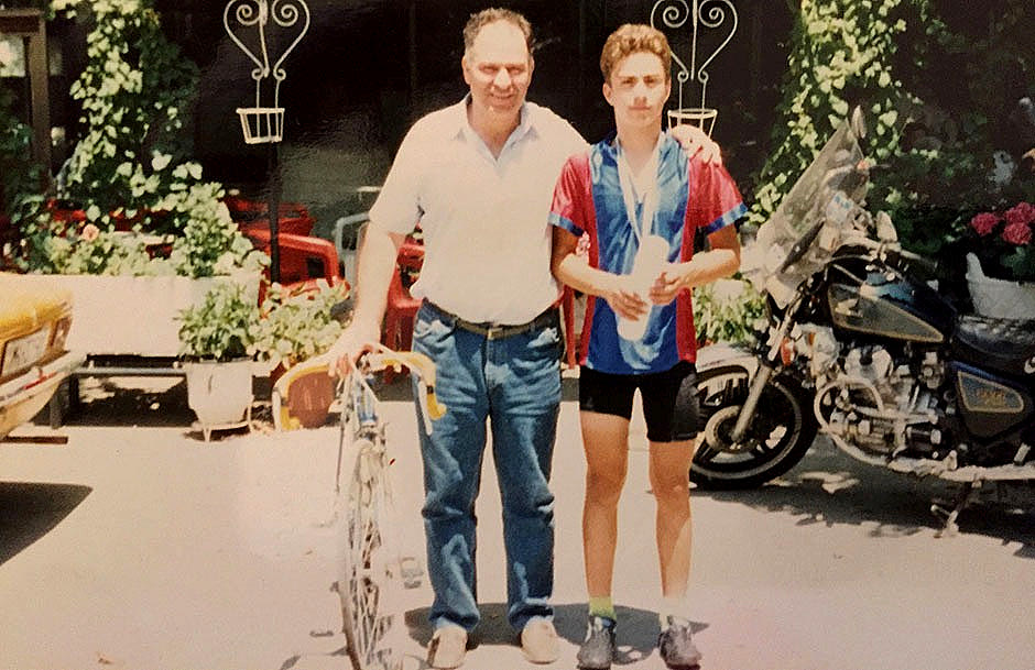 Με τον πατέρα του, 2ος στο πανελλήνιο Παίδων, σε ηλικία 15 ετών (1990)