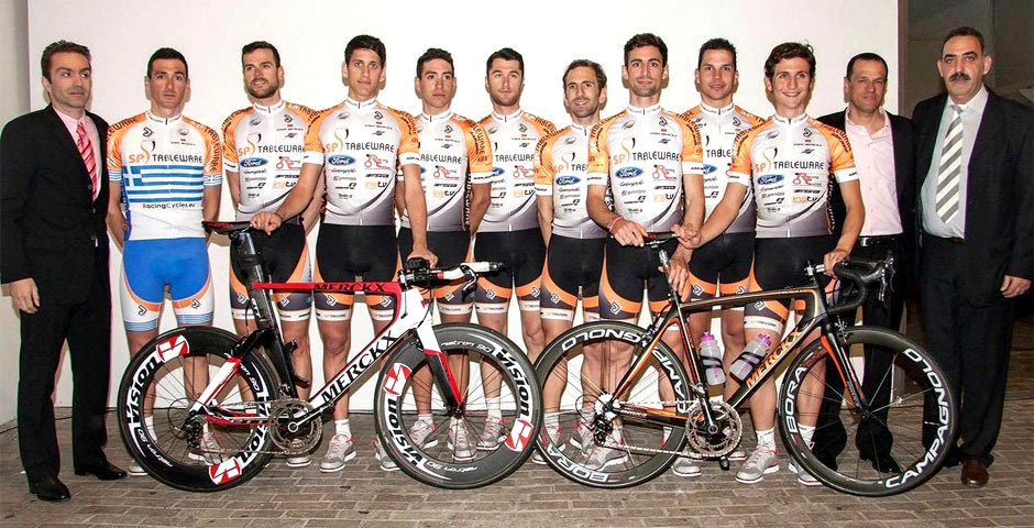 Η SP Tableware στην επίσημη παρουσίασή της τη σεζόν 2014. Από αριστερά, Βασίλης Αναστόπουλος (Team Manager), Γιάννης Ταμουρίδης, Περικλής Ηλίας, Βασίλης Σημαντηράκης, Δημήτρης Αντωνιάδης, Γιώργος Καράτζιος, Αποστόλης Μπούγλας, Γιώργος Μπούγλας, Παναγιώτης Καραμπινάκης, Νεόφυτος Σακελλαρίδης Μάγκουρας, Γιώργος Μανιάτης (προπονητής), Παντελής Παπάζογλου (ιδιοκτήτης)
