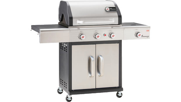 Ψησταριά υγραερίου Grill Chef LD12344, με πλαϊνούς πάγκους και ρόδες για εύκολη μεταφορά. Διαθέτει πιεζοηλεκτρική ανάφλεξη, δύο ανεξάρτητα ρυθμιζόμενους ανοξείδωτους καυστήρες, εμαγιέ σχάρα ψησίματος και καπάκι με θερμόμετρο.