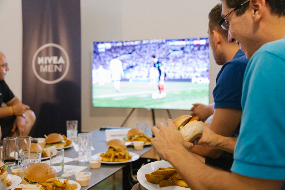 Κατόπιν, κι αφού ολοκληρώθηκε με απόλυτη επιτυχία η αποστολή, στρογγυλοκαθίσαμε στο σαλόνι και απολαύσαμε ζουμερά burger: Tης σέντρας, του πέναλτι και της παράτασης, από τον ειδικά διαμορφωμένο κατάλογο – προσφορά του NIVEA MEN!