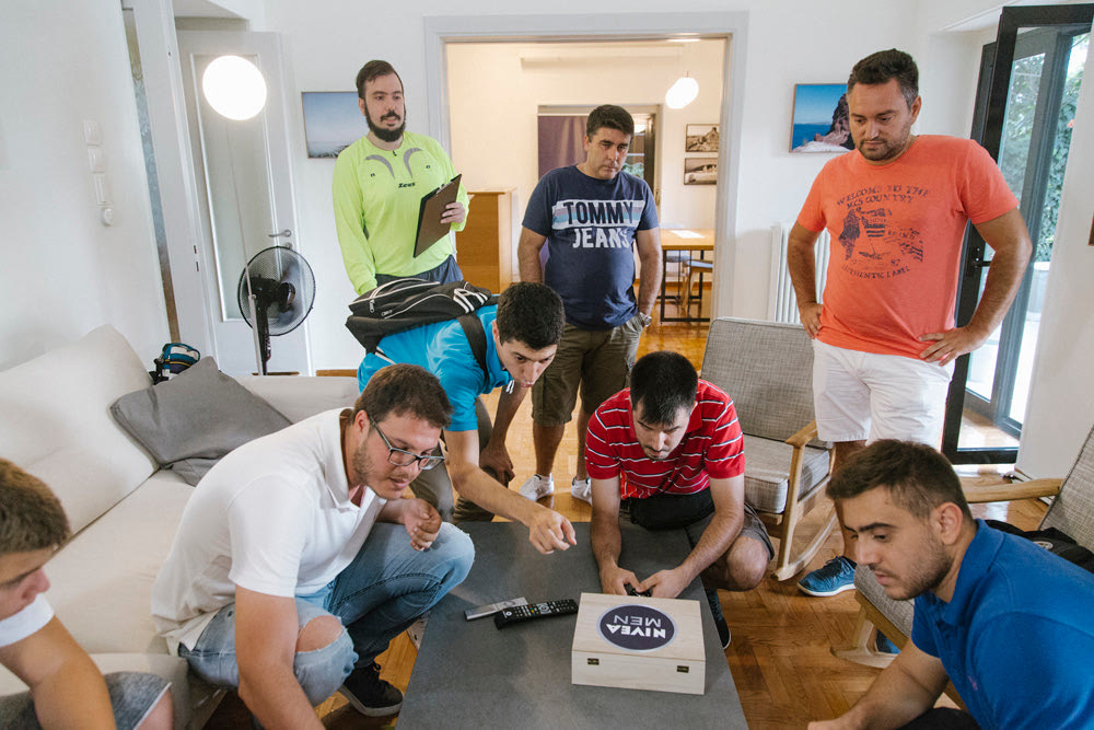 Από τις 19:30 άρχισαν να καταφθάνουν οι πρώτοι τυχεροί στο Σπίτι της 24MEDIA. Εκεί τους υποδέχθηκε ο “δίκαιος και πενηνταρίσιος” διαιτητής, Γιάννης, ο οποίος φρόντισε να τους βάλει από νωρίς στο κλίμα του ημιτελικού. Για να καθίσουν αναπαυτικά στον καναπέ και να απολαύσουν το παιχνίδι Κροατία – Αγγλία, θα έπρεπε όλοι να λειτουργήσουν όλοι ως ομάδα και να βγάλουν εις πέρας τις αποστολές, που είχε θέσει εξ αρχής το NIVEA MEN.