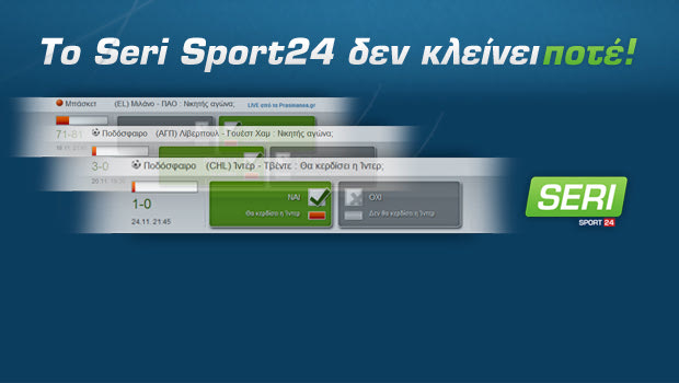 Το παιχνίδι που κάθε μήνα σου δίνει τη δυνατότητα να κερδίσεις μέχρι και 100.000 ευρώ δεν σταματάει ποτέ! Το παιχνίδι που σίγουρα μοιράζει κάθε μήνα τουλάχιστον 1.000 ευρώ συνεχίζει χωρίς να γνωρίζει από διακοπές ή απεργίες, γιατί είναι… Seri SPORT 24!