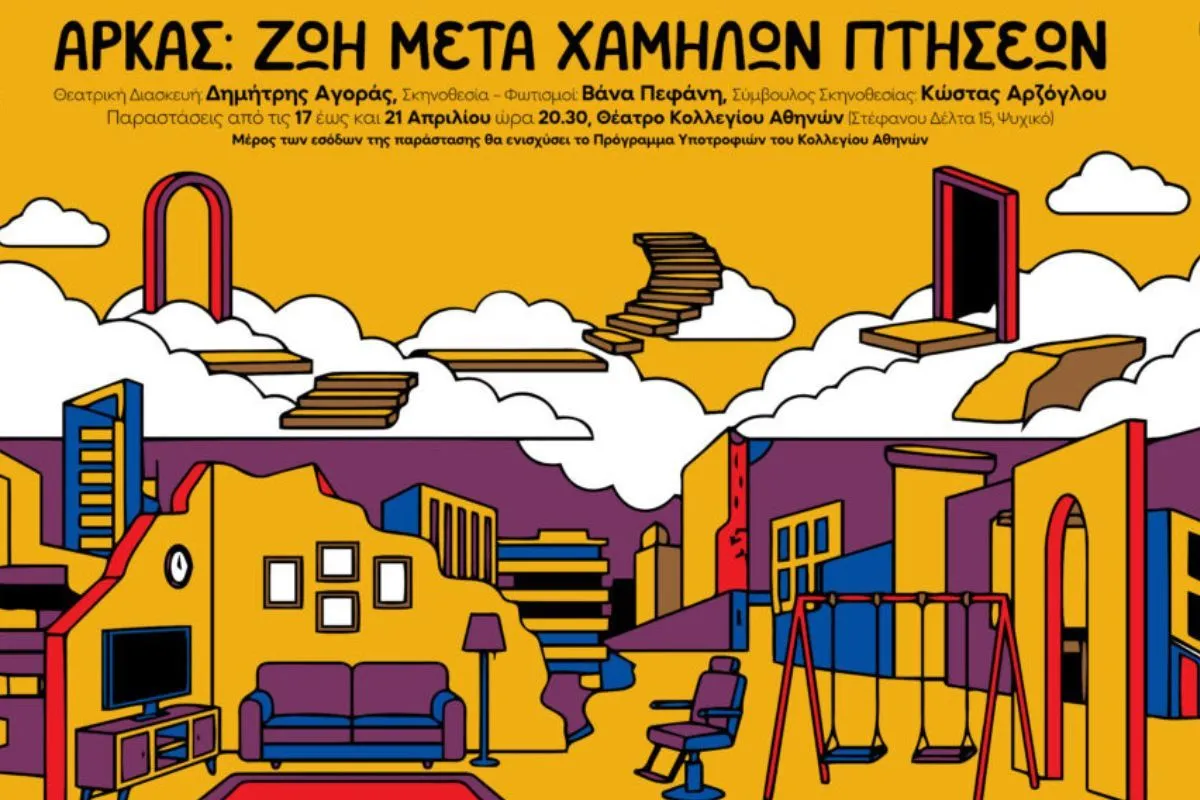 Η Θεατρική Ομάδα του Συλλόγου Αποφοίτων του Κολλεγίου Αθηνών – Κολλεγίου Ψυχικού (ΣΑΚΑ) προσκαλεί το κοινό στη νέα της θεατρική παράσταση, βασισμένη στο μοναδικό σύμπαν του Αρκά. Με τίτλο «Ζωή Μετά Χαμηλών Πτήσεων», η παράσταση ζωντανεύει επί σκηνής τον καυστικό, ευφυή και διαχρονικό λόγο του αγαπημένου δημιουργού, μεταφέροντας στο θέατρο τον ιδιαίτερο κόσμο των χαρακτήρων του με χιούμορ, ευαισθησία και αιχμηρή κοινωνική ματιά. Πρόκειται για μια θεατρική διασκευή των κόμικς του Αρκά: Ισοβίτης, Χαμηλές πτήσεις, Καστράτο, Ζωή Μετά, Μαλλί με Mαλλί και Ρόζα. Η θεατρική διασκευή φέρει την υπογραφή του Δημήτρη Αγορά, ενώ τη σκηνοθεσία και τους φωτισμούς υπογράφει η Βάνα Πεφάνη. Στο πλευρό της, ως σύμβουλος σκηνοθεσίας, βρίσκεται ο Κώστας Αρζόγλου, συμβάλλοντας με την εμπειρία και τη βαθιά γνώση του θεάτρου στη διαμόρφωση της παράστασης. Τα σκηνικά και τα κοστούμια σε επιμέλεια του Γιώργου Λιντζέρη, πλαισιώνουν τη συνολική σκηνική αισθητική της παράστασης. Πρόκειται για μια δημιουργική προσέγγιση που αναδεικνύει την πολυεπίπεδη γραφή του Αρκά, ισορροπώντας ανάμεσα στο γέλιο και τον προβληματισμό, και προσφέροντας στο κοινό μια σύγχρονη θεατρική εμπειρία με έντονο αποτύπωμα.