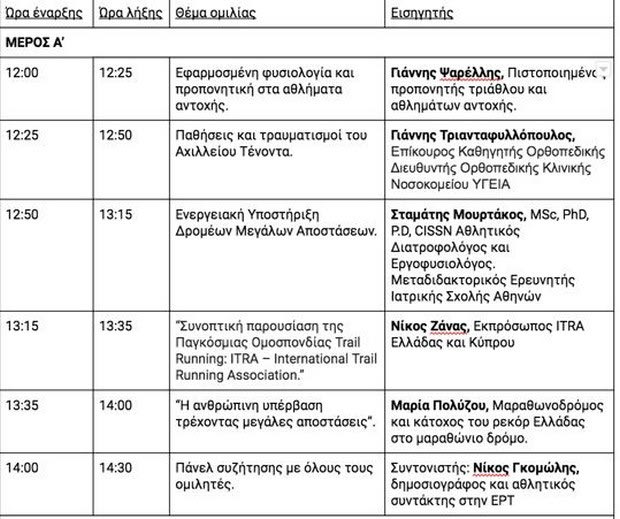 Αθλητική Επιστημονική Ημερίδα στην διοργάνωση του 1ου Atromitos ULTRA RUN στις 8 Φεβρουαρίου στο Ολυμπιακό Κωπηλατοδρόμιο Σχινιά.