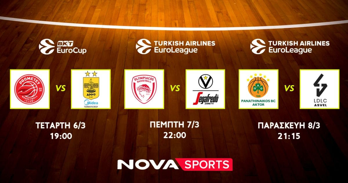 Μπασκετικό υπερθέαμα με Euroleague και τη «μάχη» του Άρη για πρόκριση στους «8» του EuroCup στο Novasports!
