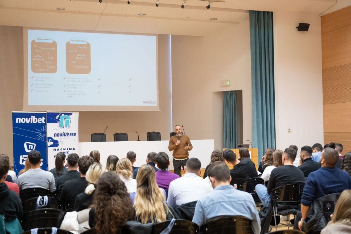 Τα μέλη του Πανοράματος Επιχειρηματικότητας & Σταδιοδρομίας υποδέχθηκε στα γραφεία της η Novibet δίνοντας την ευκαιρία σε νέους επαγγελματίες να γνωρίσουν μια από τις πλέον ταχύτατα αναπτυσσόμενες εταιρείες παγκοσμίως στο χώρο του online gaming. Οι συμμετέχοντες περιηγήθηκαν στα γραφεία της εταιρείας, έλαβαν πολύτιμες πληροφορίες για την αποτελεσματική συνεργασία των ομάδων στο χώρο εργασίας, και εν συνεχεία παρακολούθησαν ομιλίες στελεχών της Novibet, στο πλαίσιο μιας διαδραστικής εμπειρίας συνδιαμόρφωσης ιδεών. Μέσα από σειρά παρουσιάσεων και εκτεταμένο Q&A, διαμορφώθηκε μια ολοκληρωμένη εικόνα για τους παράγοντες που οδηγούν στην ανάπτυξη μιας GameTech εταιρείας και την επιτυχημένη επέκτασή της σε νέες αγορές.