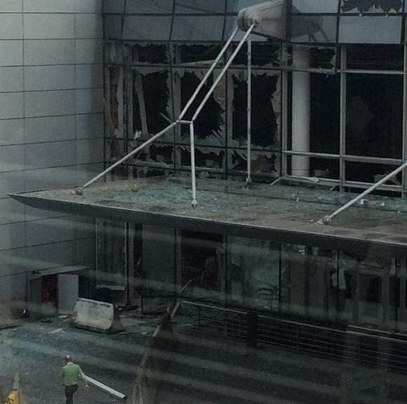 Εικόνα από το παράθυρο του αεροδρομίου λίγο μετά το χτύπημα