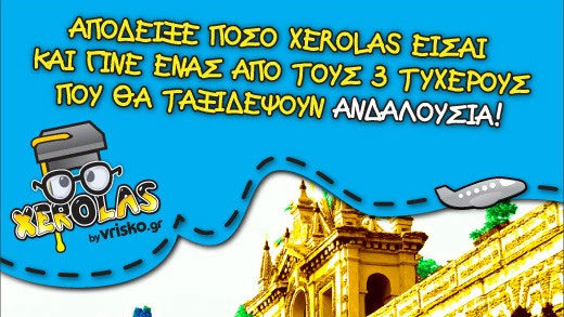 Κι επειδή η κλήρωση για τα ταξίδια θα γίνει στις 05/07, δεν έχεις άλλο καιρό για χάσιμο! Μπες τώρα στην Facebook Fan Page του vrisko.gr, δείξε πόσο Xerolas είσαι και… ετοίμασε βαλίτσες για Ανδαλουσία! Τώρα που το ξέρεις, δεν έχεις δικαιολογίες!