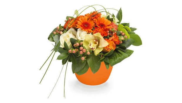 Η όμορφη ανθοσύνθεση θα ενθουσιάσει με τα πορτοκαλί τριαντάφυλλα και τις ζέρμπερες ενώ η ορχιδέα και το χρυσάνθεμο σε πράσινο χρώμα θα δώσει μια νότα αισιοδοξίας. Μια ιδανική επιλογή για χαρούμενες περιστάσεις αλλά και για μια ιδιαίτερη στιγμή που θα θέλετε να δώσετε τις πιο θερμές σας ευχές.
