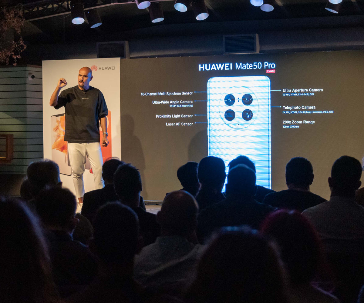 Τα ιδιαίτερα χαρακτηριστικά της κάμερας του HUAWEI Mate 50 Pro παρουσίασε ο κορυφαίος φωτογράφος, Δημήτρης Σκουλός. Μύησε το κοινό στα μυστικά μιας καλής φωτογραφίας, υπό πολλές διαφορετικές συνθήκες, δίνοντας τα καλύτερα φωτογραφικά tips.
