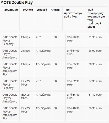 Τα Προγράμματα OTE Double Play προσφέρουν: