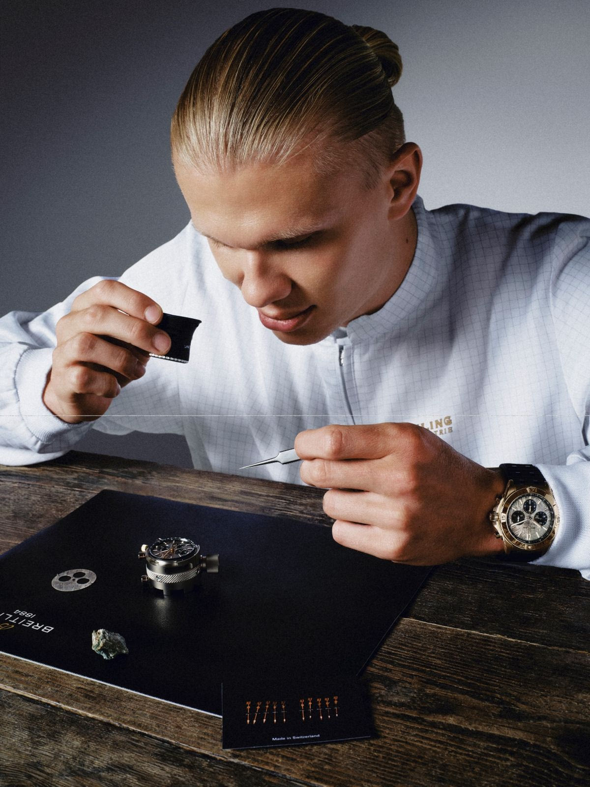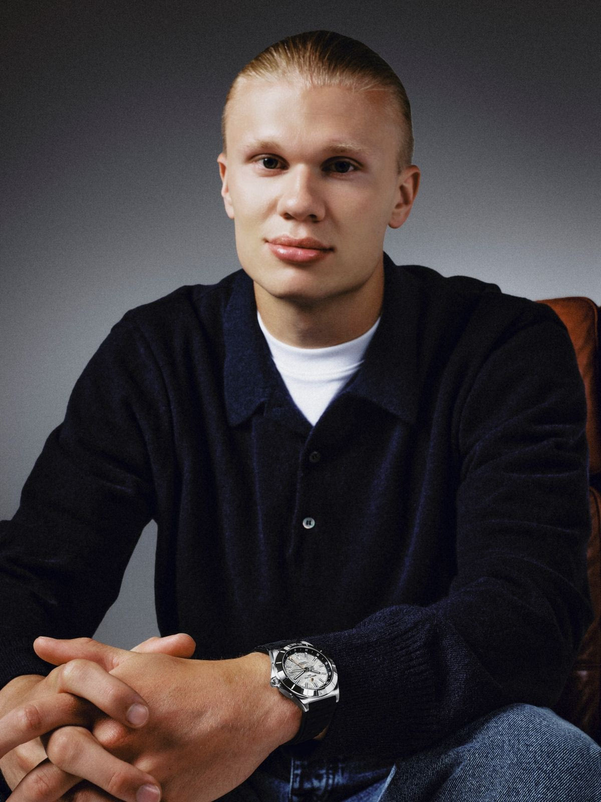 Ο διευθύνων σύμβουλος της Breitling, Georges Kern, πρόσθεσε: «Ο Erling παίζει σαν να είναι από άλλον πλανήτη, οπότε όταν μιλήσαμε για τα υλικά, το καντράν από μετεωρίτη ήταν η ιδανική επιλογή. Είναι ένα ρολόι τόσο δυναμικό και μοναδικό όσο κι εκείνος».