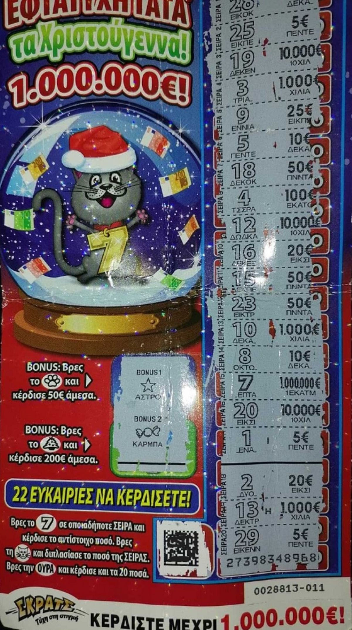 Υπερτυχερός παίκτης του ΣΚΡΑΤΣ κέρδισε 1 εκατ. ευρώ