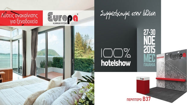 Η EUROPA PROFIL ΑΛΟΥΜΙΝΙΟ Α.Β.Ε., παρακολουθώντας και συμμετέχοντας στις εξελίξεις του τεχνικού κόσμου, παίρνει μέρος στην έκθεση 100% Hotel Show που πραγματοποιείται το διάστημα 27-30 Νοεμβρίου 2015.