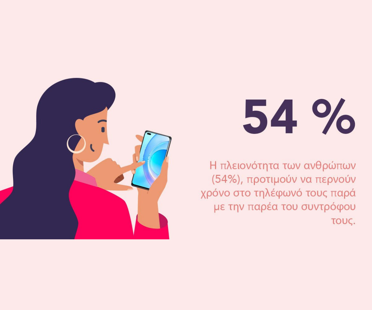 - Η πλειονότητα των ανθρώπων (54%), προτιμούν να περνούν χρόνο στο τηλέφωνό τους παρά στην παρέα του συντρόφου τους.