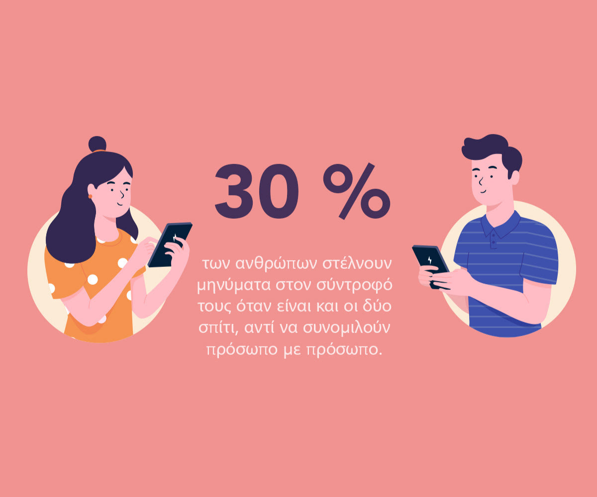 - Το 30% των ανθρώπων στέλνουν μηνύματα στον σύντροφό τους όταν είναι και οι δύο σπίτι, αντί να συνομιλούν πρόσωπο με πρόσωπο.