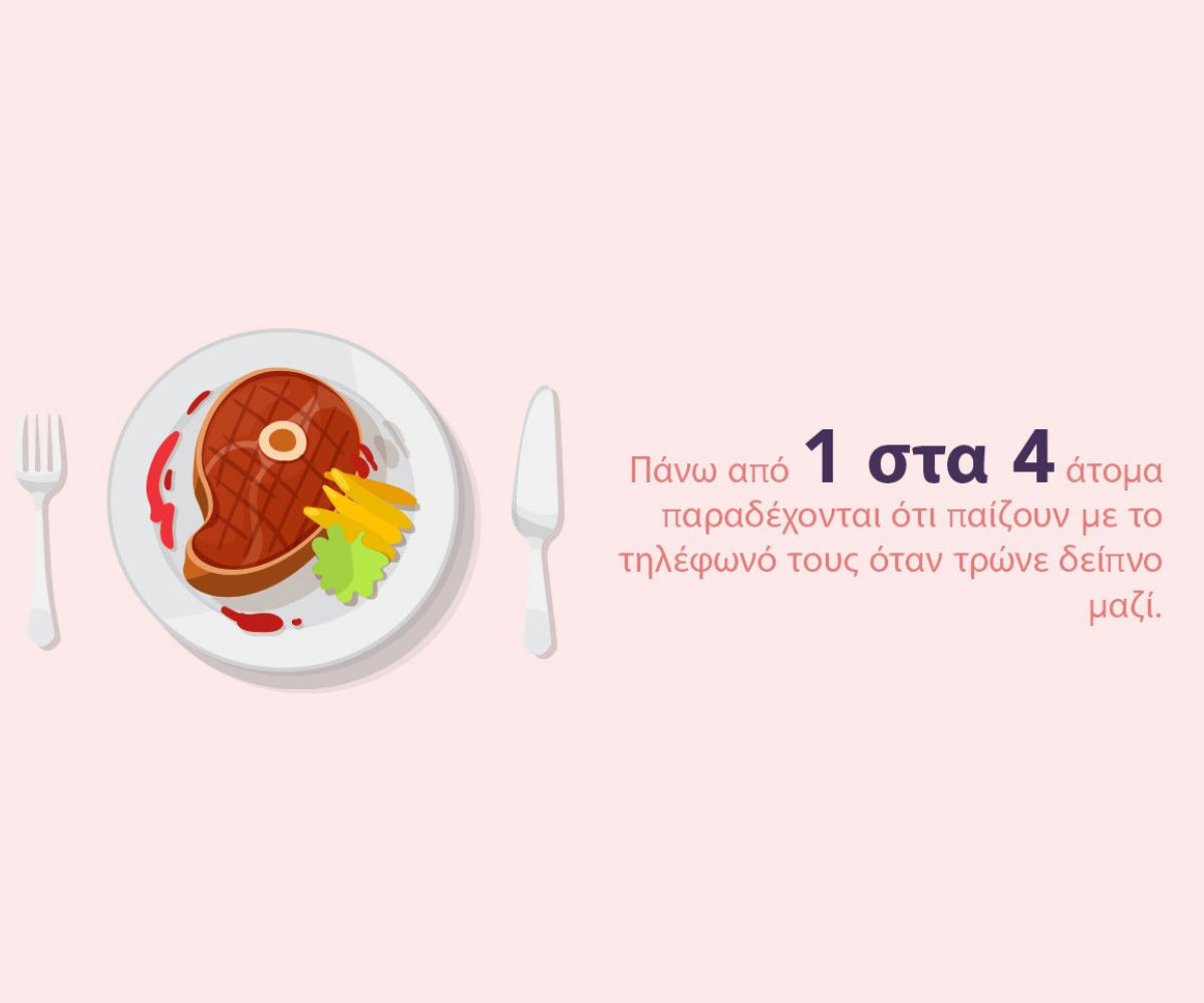 - Πάνω από 1 στα 4 άτομα παραδέχονται ότι παίζουν με το τηλέφωνό τους όταν τρώνε δείπνο μαζί.